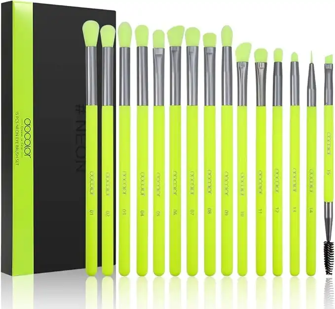 Docolor Eyeshadow Brush Set 15Pcs Neon Green Eye Makeup Brushes Professional Eye Shadow Blending Concealer Eyebrow Eyelash Eye Liners Premium Synthetic Make Up Brushes with Case — Price History & Tracker | DeserTracker