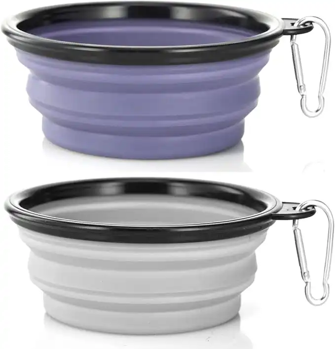 amazon.aeDog Bowl Pet Collapsible Bowls, 2 Pack Collapsible Dog Water Bowls for Cats Dogs, Portable Pet Feeding Watering Dish for Walking Parking Traveling with 2 Carabiners (Small, Purple & Concrete Gray)