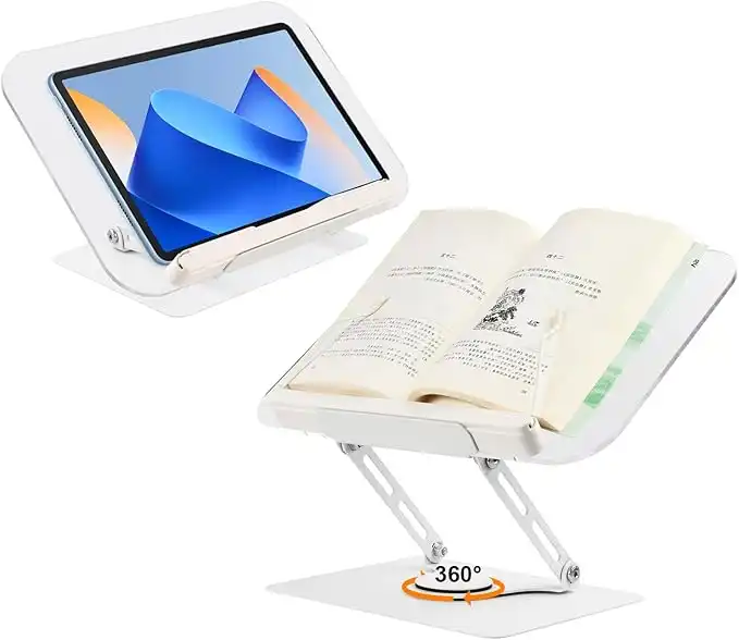 Dokeno Book Stand, Reading Stand, Book Stand, Height Adjustable, Clear Acrylic Book Stand, Cookbook Holder, Book Holder, Reading Stand, Acrylic, 360° Rotating Base, for Recipes, Magazines, Tablets,