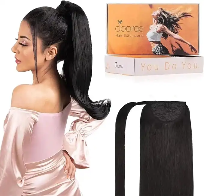 DOORES Ponytail Extensions 16 Inch 80g Natural Black Clip In Hair Extensions Remy Human Hair Extensions Ponytail Straight Natural Wrap Around Ponytail Human Hair One Piece with Magic Paste — Price History & Tracker | DeserTracker