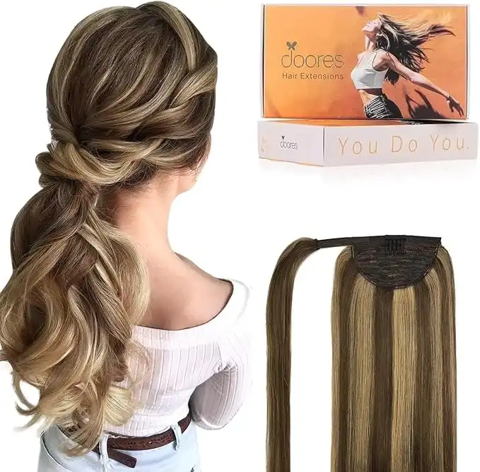 DOORES Ponytail Extensions Clip in Hair Extensions 14 Inch 80g Balayage Chocolate Brown Mixed Caramel Blonde Wrap Around Ponytail Human Hair Piece with Magic Paste Natural Straight — Price History & Tracker | DeserTracker