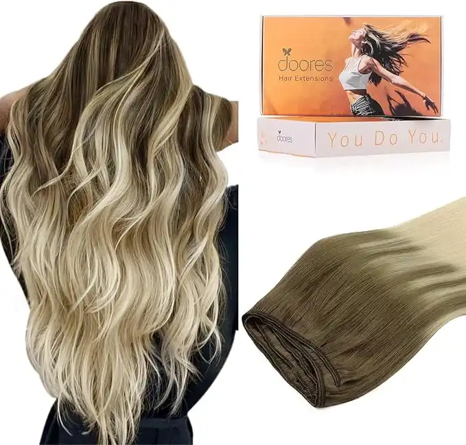 DOORES Sew in Hair Extensions Human Hair, 14 Inch 80g Ash Brown to Platinum Blonde, Straight Natural Hairpieces for Women — Price History & Tracker | DeserTracker