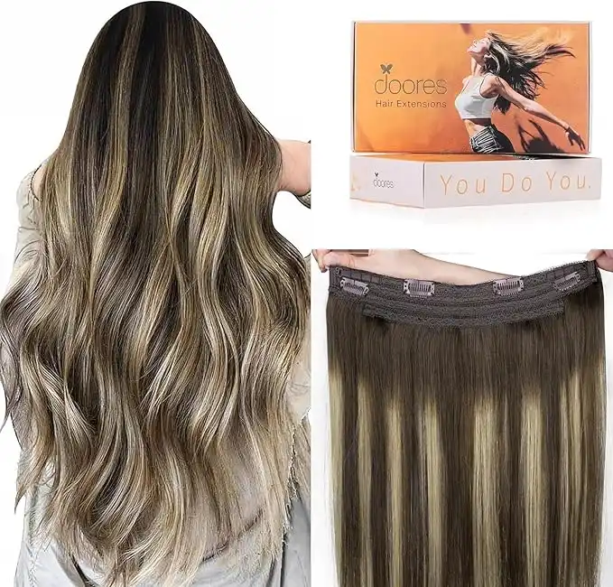 amazon.aeDOORES Wire Hair Extensions 14 Inch 75g Remy Human Wire Hair Extensions Invisible Transparent Line Adjustable Hairpieces Secret Extensions Straight Hair Balayage Chocolate Brown to Caramel Blonde