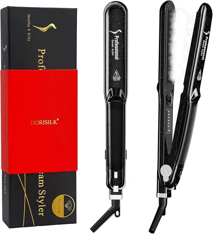 amazon.aeDORISILK Steam Straighteners for Hair, Professional Salon Ceramic Tourmaline Vapor Steam Flat Iron Hair Straightener, Dual Voltage 2 in 1 Straightening Curling, LED Display with Adjustable Temp.