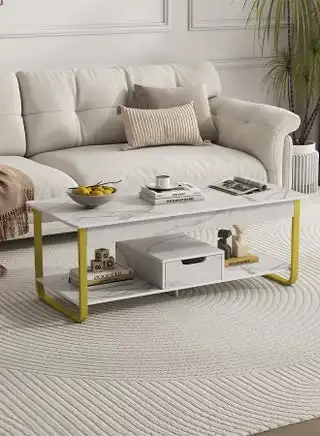 Double Layer Coffee Table With Lockers Sofa Side Table Marble Texture End Table White 110 x 50 x 42cm — Price History & Tracker | DeserTracker