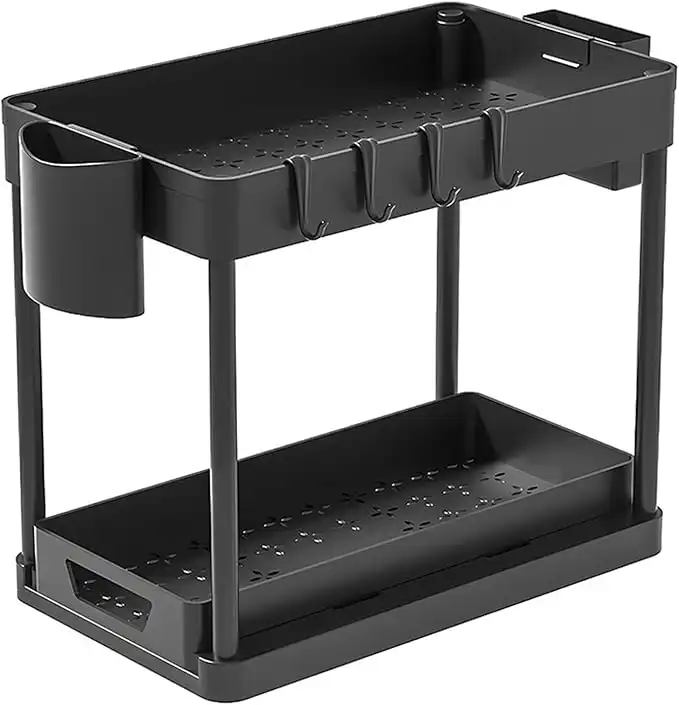 Double Sliding Under Sink Organizer, 2 Tier Bathroom Organizer with 1 Cup 4 Hooks, Multi-purpose Under Cabinet Storage Rack, Under Sink Organizers and Storage for Home Kitchen Organization — Price History & Tracker | DeserTracker