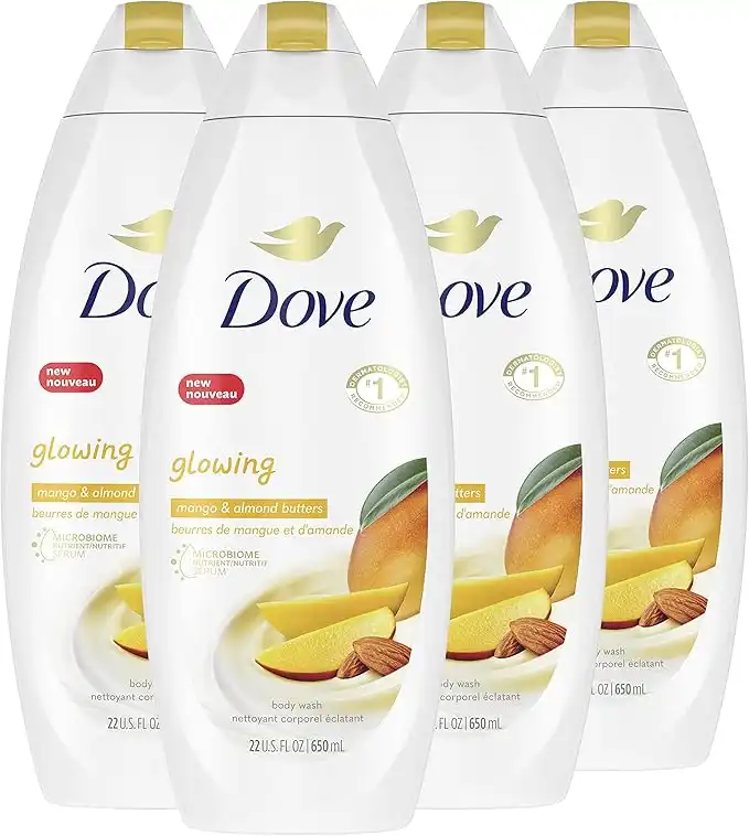 Dove Glowing Body Wash For Revitalized, Refreshed Skin Mango Butter And Almond Butter Cleanser That Effectively Washes Away Bacteria While Nourishing Your Skin 22oz 4 Count