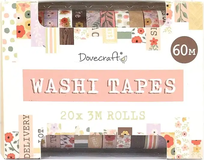 Dovecraft Washi Tape Box-20 Designs-Pastels-10mm Width-3m Rolls-Includes Storage Box-for Crafts, Stationery, Journaling, Home Decor, Paper, Multicolour, One Size — Price History & Tracker | DeserTracker
