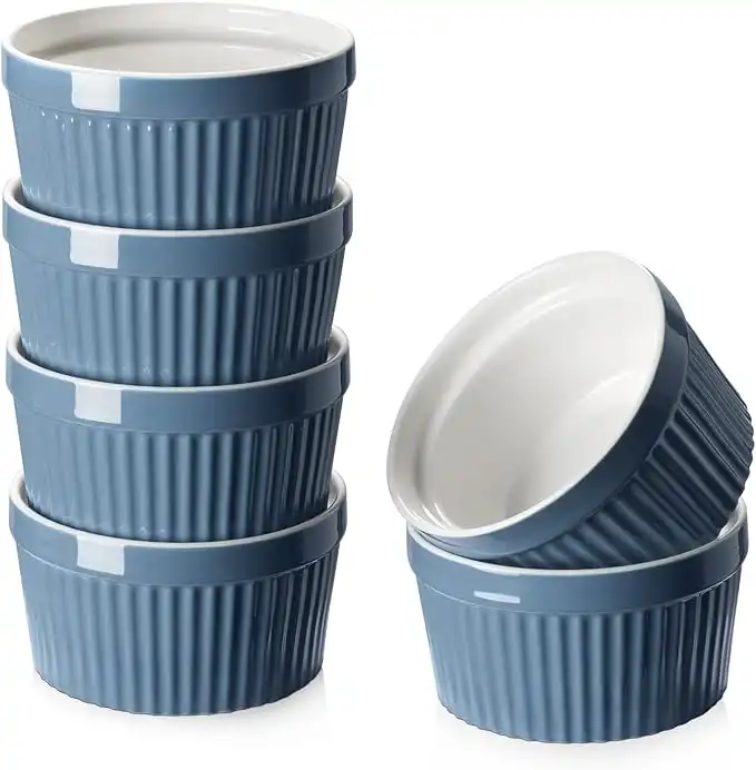 DOWAN 8 oz Porcelain Ramekins Bowls for Souffle, Creme Brulee, Classic Style Ramekins for Baking Oven Safe, Set of 6, Airy Blue