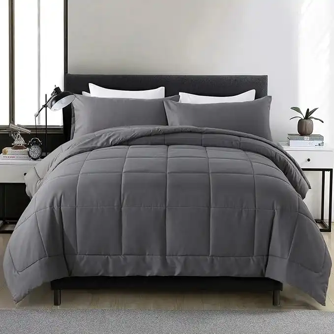 DOWNCOOL King Size Comforter Set -All Season Bedding Comforters Sets with 2 Pillow Cases -3 Pieces Bed Set Down Alternative King Bedding Set -Grey King Comforter Set(102"x90") — Price History & Tracker | DeserTracker
