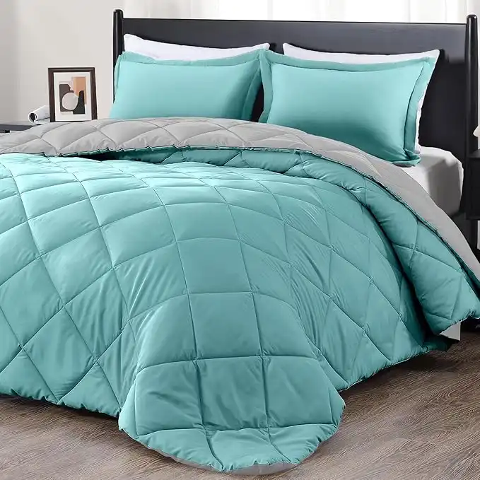downluxe Twin Comforter Set - Turquoise and Grey Twin Comforter, Soft Bedding Sets for All Seasons -2 Pieces - 1 Comforter (66"x92") and 1 Pillow Sham(20"x26")