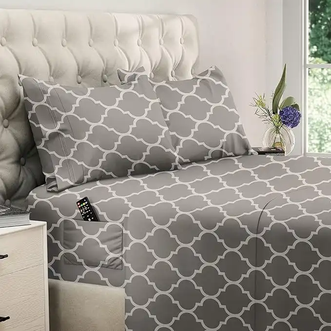 DREAMCARE Full Size Sheet Sets - 4 PCS Set - up to 15 inches - 2500 Supreme Collection - Superior Softness - Hotel Luxury Sheets & Pillowcases Set - Wrinkle and Fade Resistant (Full, Quatrefoil Grey) — Price History & Tracker | DeserTracker