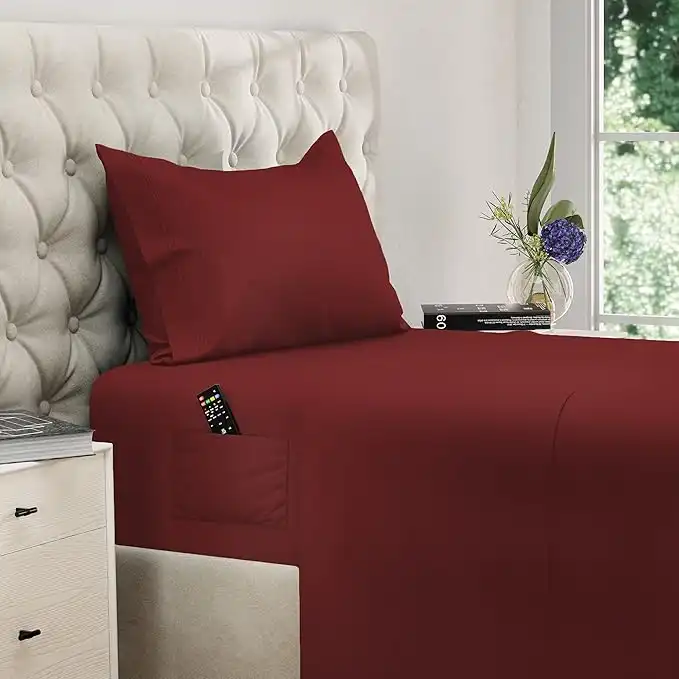 DREAMCARE Twin XL Sheet Sets – 3pcs Cooling Sheets – up to 15” Deep Pocket Twin XL Sheets Set – Hotel Luxury Sheets & Pillowcases – Superior Softness 100% Fine Microfiber with Side Pocket – Burgundy