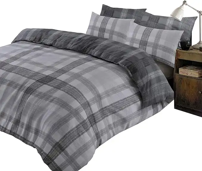 Dreamscene Boston 100% Brushed Cotton Duvet Cover with Pillow Case Flannelette Thermal Tartan Check Bedding Set, Grey Black - Double — Price History & Tracker | DeserTracker