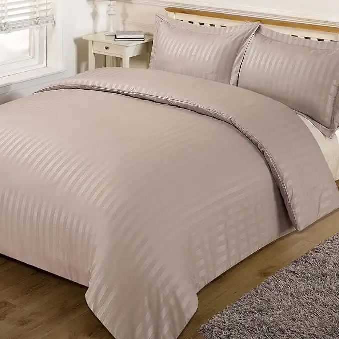 Dreamscene Satin Stripe Beautiful Soft Fresh Comfortable Simple Eyecatching Duvet Cover Bedding Set, Mink - Superking — Price History & Tracker | DeserTracker