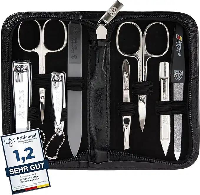 amazon.aeDREI SCHWERTER - 8-Piece Manicure Set 'Roma' | Nail Care Set in Black Faux Leather Case | Contents: Nail Scissors Set, Foot and Nail Clippers, Tweezers, Glass Nail File, Sapphire Nail