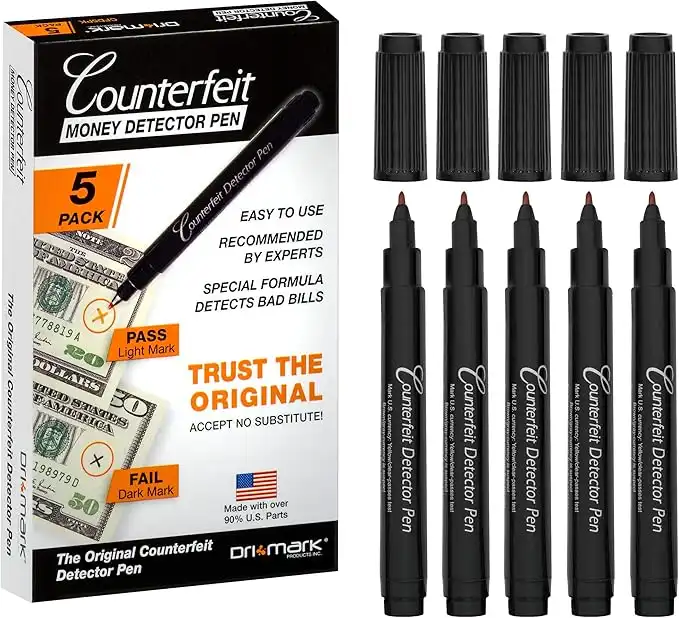 amazon.aeDri Mark CFD5PK Counterfeit Bill Detector Marker Pen, Made in The USA, 3 Times More Ink, Pocket Size, Fake Money Checker - Money Loss Prevention Tester & Fraud Protection for U.S. Currency (Pack of 5)