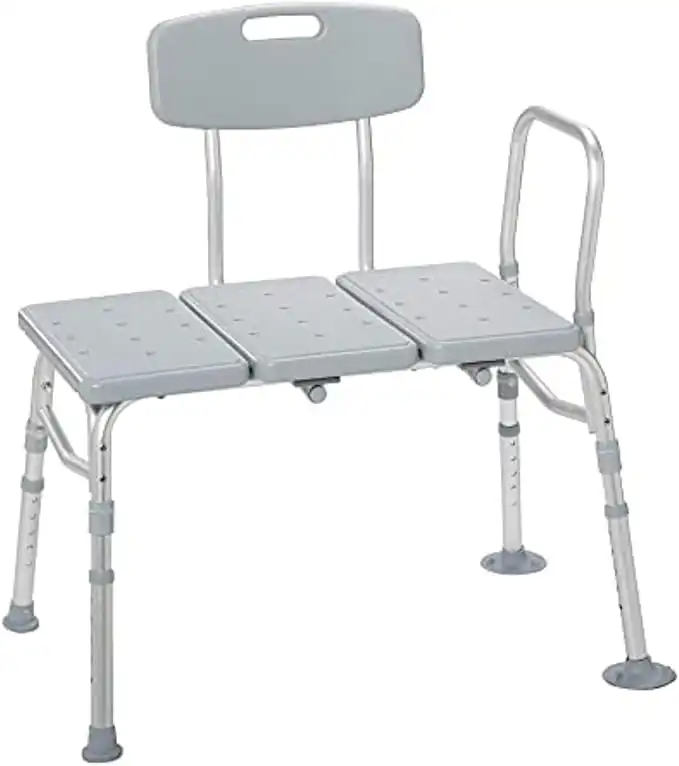 Drive Medical 12011KD-1 Tub Transfer Bench For Bathtub, Height Adjustable Shower Bench with Backrest, Shower Seat Shower Chair Bath Chair for Elderly, Seniors, Arm Support for Transfer, 400 Weight Cap