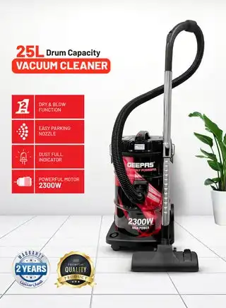 Drum Vacuum Cleaner With 25 L Dust Bag Capacity/Dry And Blow Function/Adjustable Suction Power And Multi-Filtration System/Dust Full Indicator & Perfect For Home, Apartments, Offices & Malls 2300 W GVC2598N Grey/Black