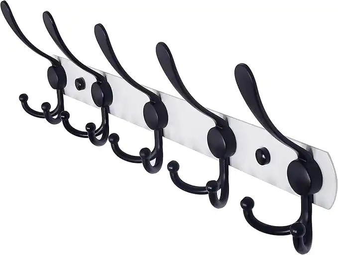 Dseap Coat Rack - Heavy Duty Coat Hooks with 5 Triple Hooks, Stainless Steel Wall Coat Rack, Wall Hook, Hook Rack for Coat, Hat, Towel, Handbag, White & Black