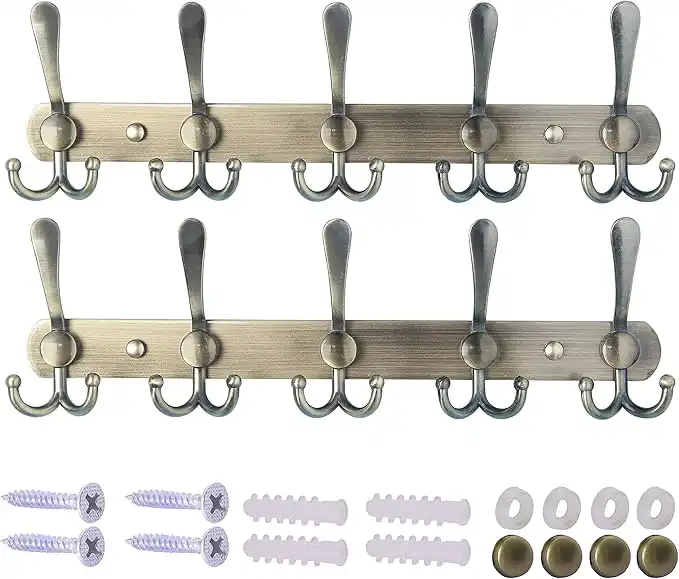 Dseap Wall Mounted Coat Rack - 5 Tri Hooks, Heavy Duty, Stainless Steel, Metal Coat Hook Rail for Coat Hat Towel Purse Robes Mudroom Bathroom Entryway (Bronze, 2 Packs) — Price History & Tracker | DeserTracker