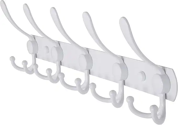 Dseap Wall Mounted Coat Rack - 5 Tri Hooks, Heavy Duty, Stainless Steel, Metal Coat Hook Rail for Coat Hat Towel Purse Robes Mudroom Bathroom Entryway,White — Price History & Tracker | DeserTracker