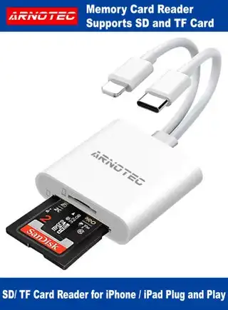 noon.comDual Card Slot SD & Micro SD Card Reader for iPhone & USB-C Devices – Plug & Play, High-Speed 20-30MB/s, Portable Memory Card Adapter for Camera, iPad, Smartphones, Supports JPEG/RAW/H.264/MPEG-4