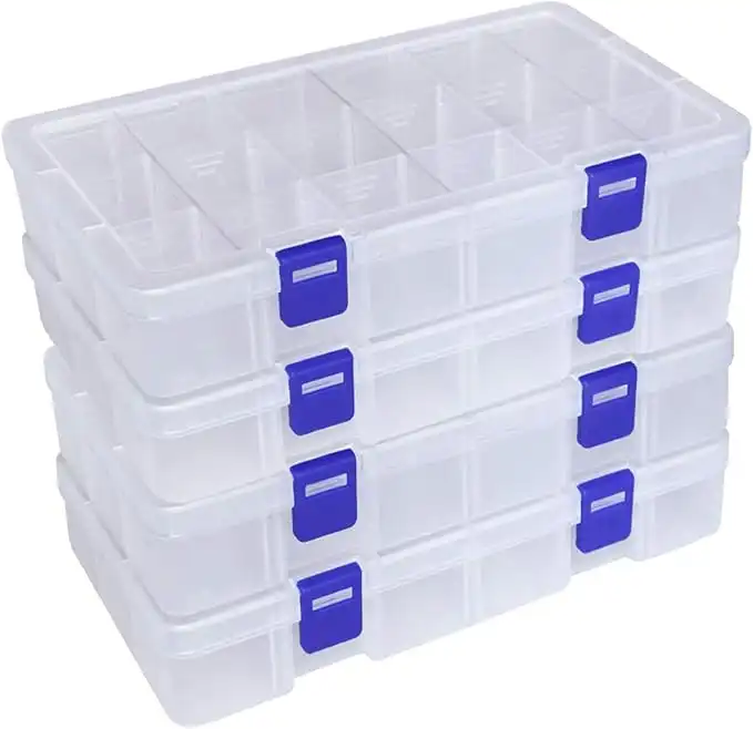 DUOFIRE Plastic Organizer Container Storage Box Adjustable Divider Removable Grid Compartment for Jewelry Beads Earring Tool Fishing Hook Small Accessories(18 grids, White X 4)