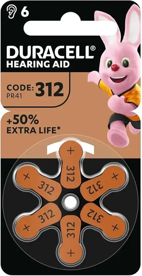 Duracell Hearing Aid Batteries Size 312 6-Pack