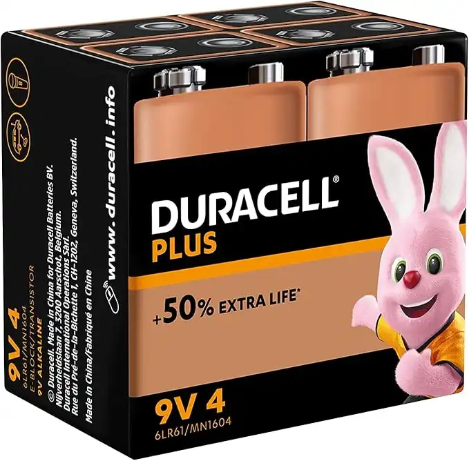 Duracell Plus 9V Batteries for smoke alarms Pack of 4