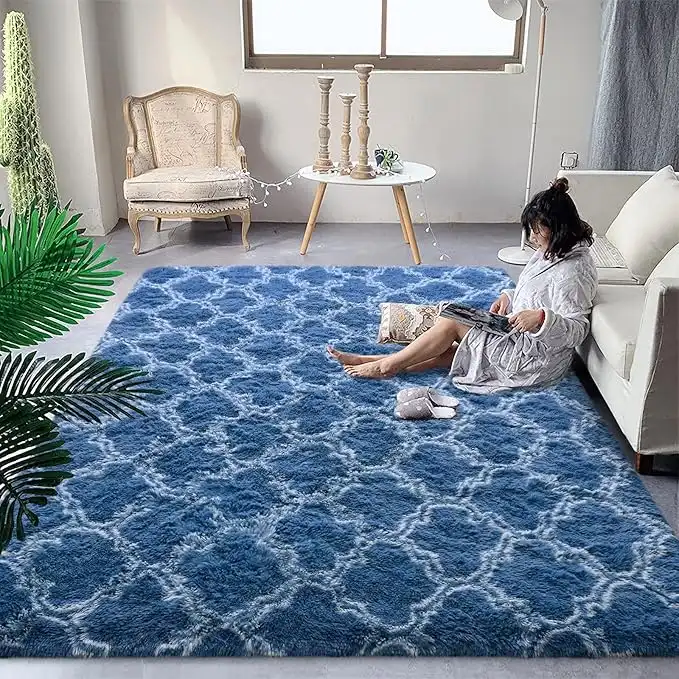 amazon.aeDweIke Shag Area Rugs Modern Indoor Plush Fluffy Carpets, 3x5 Feet Super Soft Geometric Moroccan Rugs for Bedroom, Living Room, Girls, Kids, Nursery, Home Room Decor, Deep Blue/White