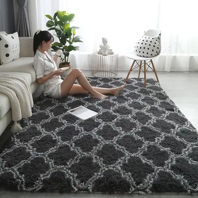 amazon.aeDweIke Shag Area Rugs Modern Indoor Plush Fluffy Carpets, 5x8 Feet Super Soft Geometric Moroccan Rugs for Bedroom, Living Room, Girls, Kids, Nursery, Home Room Decor, Dark Grey/White