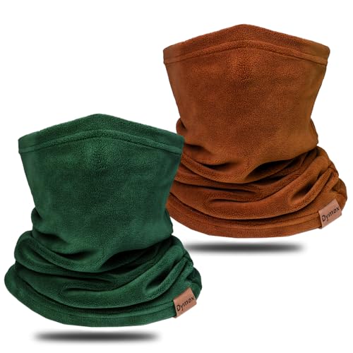 Dymex Neck Warmer Winter Neck Gaiter Face Mask Balaclavas for Women Men, Soft Fleece Face Cover Mask for Skiing Motorcycle(Dark Green/Brown, 2)