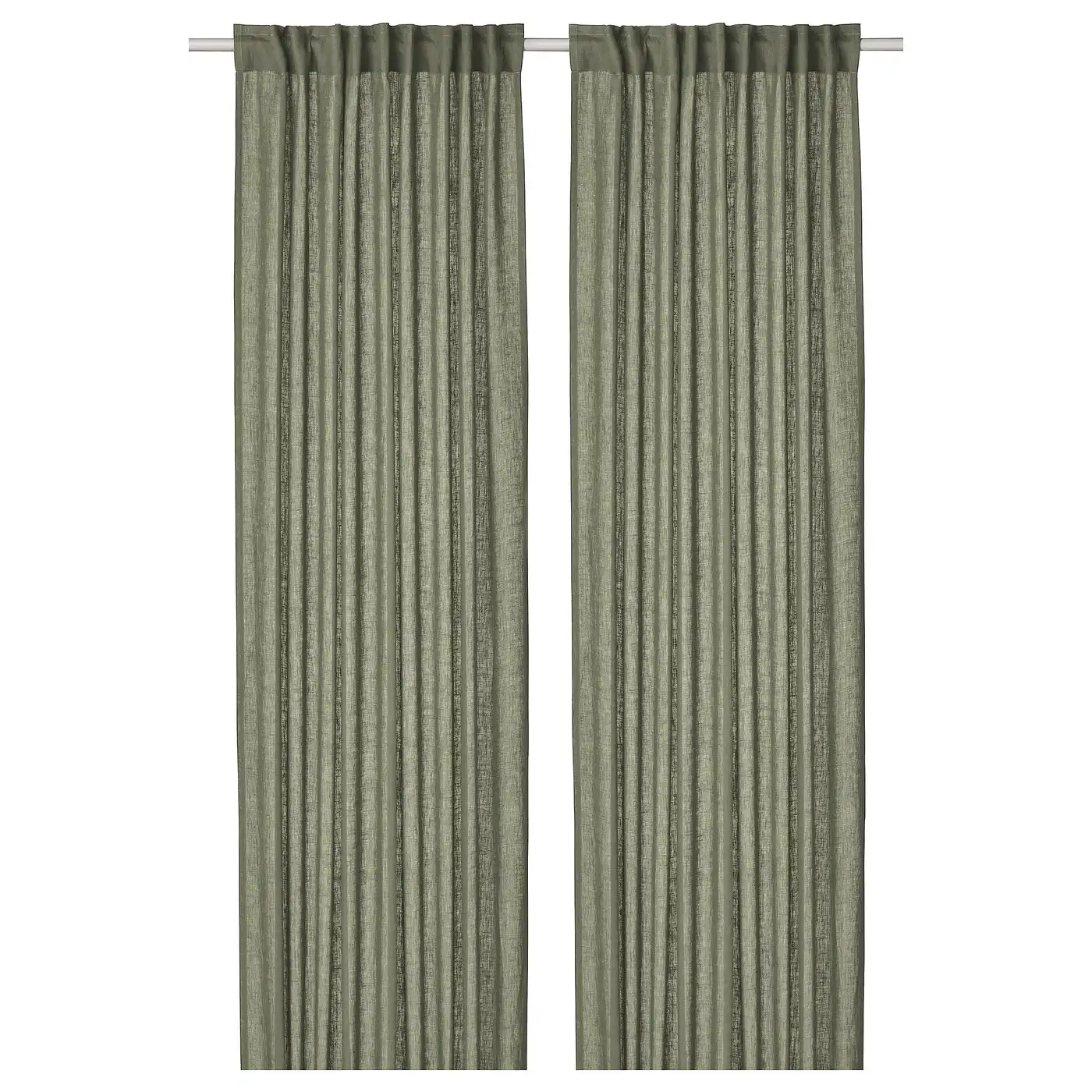 DYTÅG Curtains, 1 pair - grey-green/with heading tape 145x300 cm