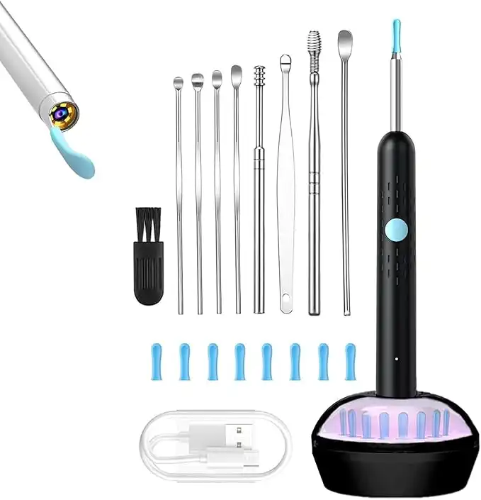 amazon.comEar Wax Removal Tool, Ear Cleaner with 6 LED Light, Wireless Ear Wax Removal kit(With charging base), 9 Ear Tools and 8 Ear Replacement Tips, for iOS & Android