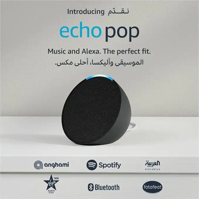 Echo Pop | Full sound compact Wi-Fi & Bluetooth smart speaker with Alexa | Use your voice to control smart home devices, play music or the Quran, and more (speaks English & Khaleeji) | Charcoal