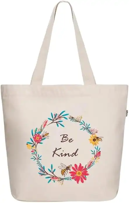 amazon.aeEco Right Aesthetic Canvas Tote Bag for Women - Large, Reusable, Zippered Tote Bag with Inner Pocket, Perfect for School, Shopping, Work, Beach, Cute & Eco-Friendly Gift for Girls, Teachers, Mothers