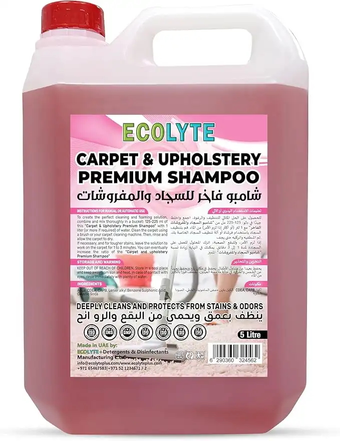 ECOLYTE+ Carpet & Upholstery Shampoo - Premium Carpet Cleaner Solution, Powerful, Deeply cleans, shampoo carpet cleaner, Removes 5X tough stains and odors, Powerful formula - 5 Liter