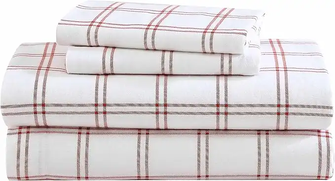 Eddie Bauer- Twin XL Sheet Set, Warm Breathable Cotton Flannel Bedding with Deep Pockets, Brushed for Extra Softness, Cozy Home Decor, Oeko-Tex Certified (Westridge Plaid Orange, Twin XL) — Price History & Tracker | DeserTracker
