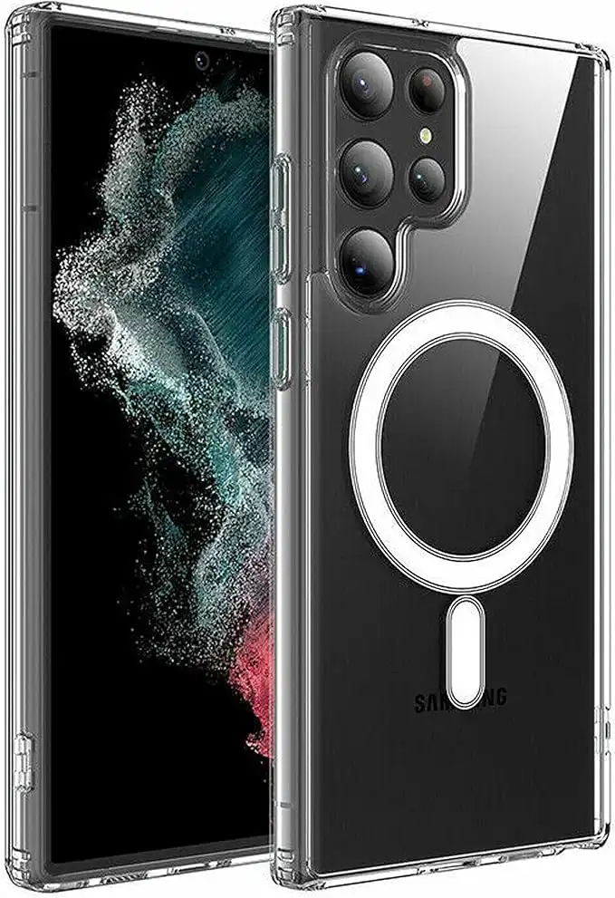 amazon.comEKAM Magsafe compatible case for Samsung Galaxy S22 Ultra 5G - MagSafe PC & TPU Clear Phone Case Built in Magnets and raised edges to protect the camera cover for Galaxy S22 Ultra 5G