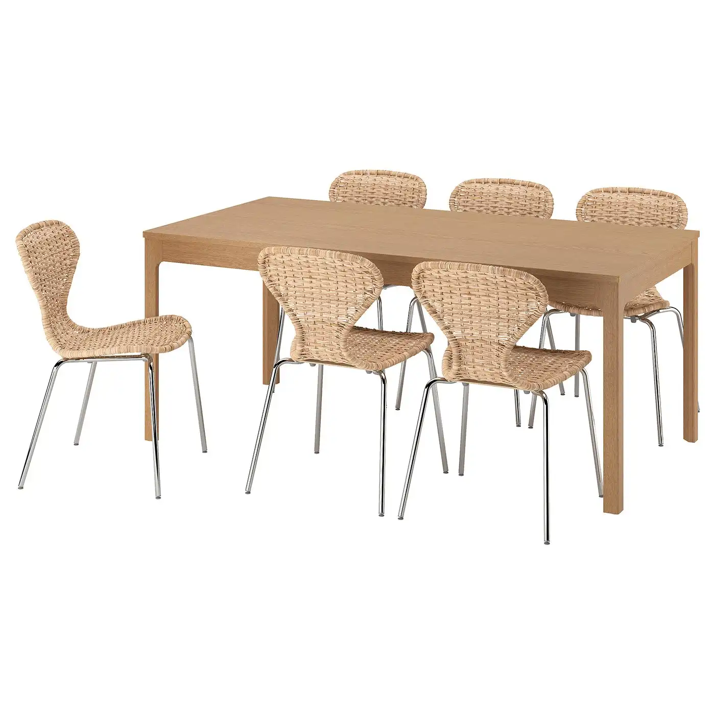 EKEDALEN / ÄLVSTA Table and 6 chairs - oak/rattan chrome-plated 180/240 cm — Price History & Tracker | DeserTracker