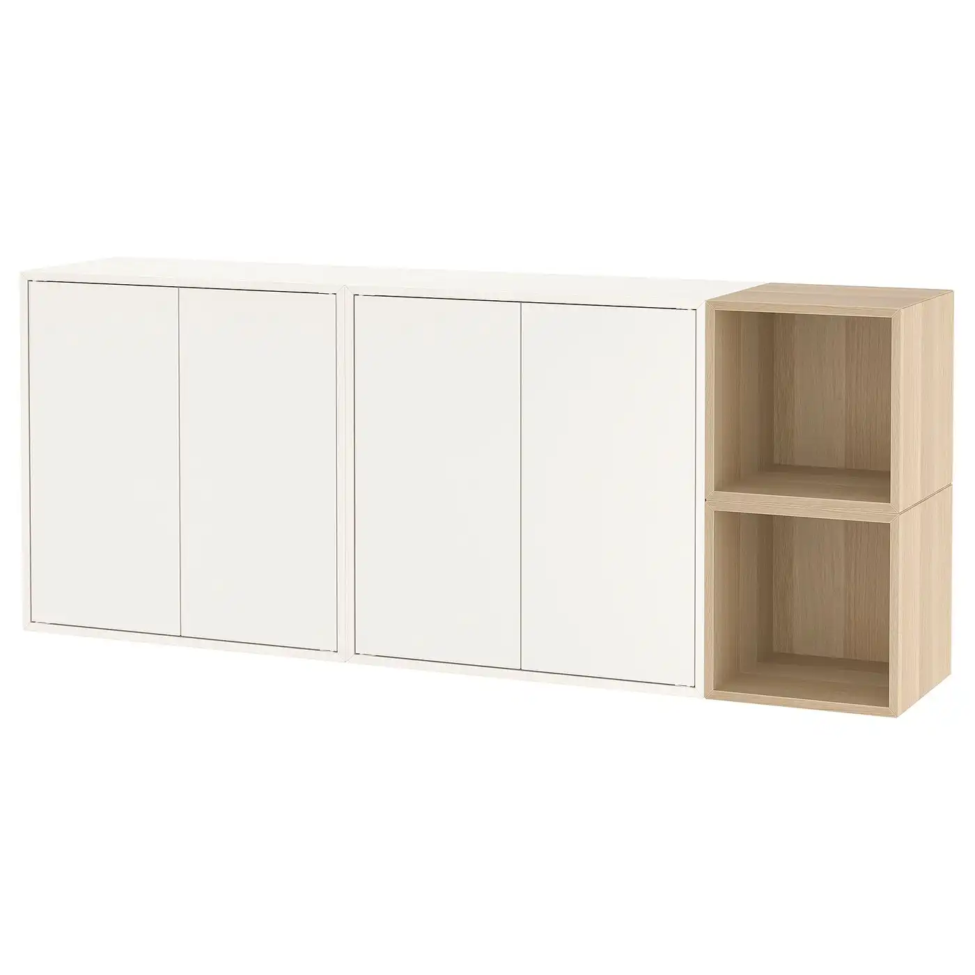 EKET Wall-mounted cabinet combination - white/white stained oak effect 175x35x70 cm