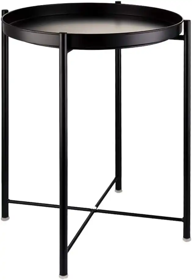 amazon.aeEKNITEY End Table,Folding Metal Side Table Waterproof Small Coffee Table Sofa Side Table with Removable Tray for Living Room Bedroom Balcony and Office (Black)
