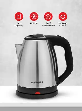 noon.comElectric Kettle with Large Capacity, 360-Degree Rotating Base, Dry Boil, Overheat Protection & Easy to Use and Clean Silver/Black 1.8 L 1500 W OMK2356 Silver/Black