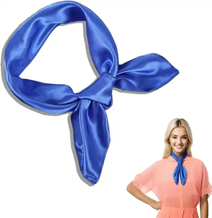 Elegant 23.6" Silk Satin Scarf for Women & Girls - Versatile Vintage Headscarf, Stylish Costume Bandana, Soft Hair Accessory - Blue
