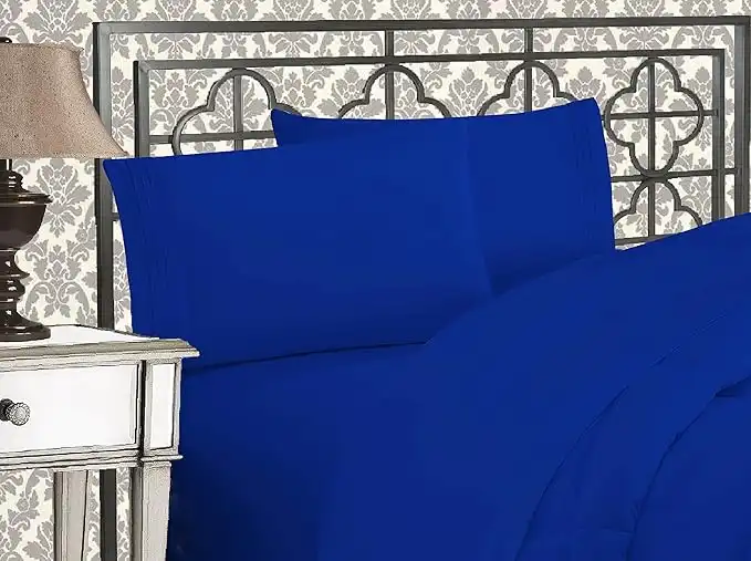 amazon.aeElegant Comfort Luxurious 1500 Premium Hotel Quality Microfiber Three Line Embroidered Softest 4-Piece Bed Sheet Set, Wrinkle and Fade Resistant, California King, Royal Blue