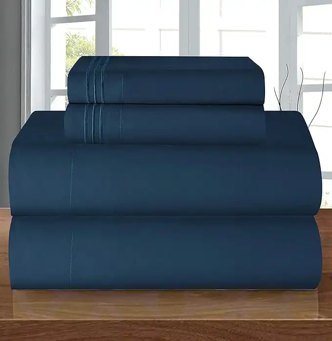 amazon.aeElegant Comfort Luxury 1500 Premium Hotel Quality Microfiber 4-Piece Sheet Set - Wrinkle Resistant, All Around Elastic Fitted Sheet, Deep Pocket up to 16", California King, Navy Blue
