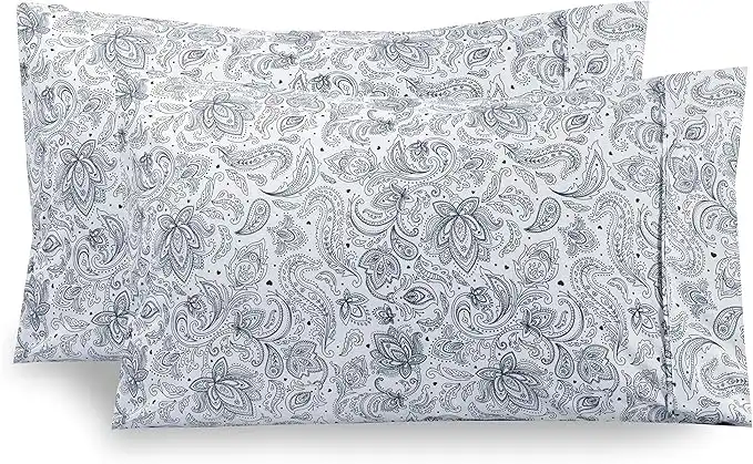 Elegant Comfort Luxury Ultra-Soft 2-Piece Pillowcase Set - 1500 Premium Hotel Quality Microfiber Double Brushed - Wrinkle Resistant, King Size, Paisley Pattern Navy Blue