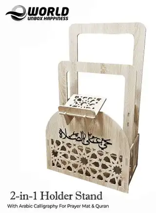 Elegant Cream Ramadan Prayer Mat and Quran Holder with Arabic Calligraphy for Home and Office Decor, Stylish, Space-Saving, Water and Fireproof Design with Lightweight Convenience