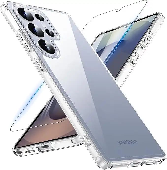 amazon.aeELEPIK for Samsung Galaxy S25 Ultra Case with Screen Protector, [Full Covered Camera Protection] [Anti-Yellowing] [Wireless Charging Compatible] Slim Transparent Protective Phone Case, Clear
